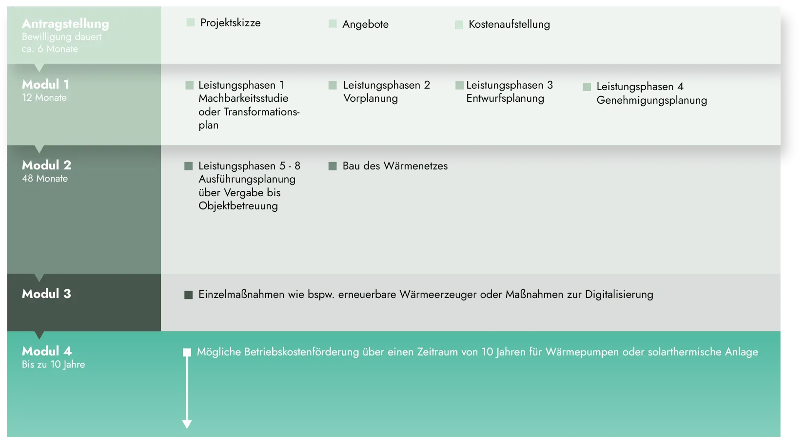 Modul 2 (Bau), Modul 3 (Einzelmaßnahmen) und Modul 4 (Betriebskostenförderung
